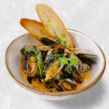 Мидии в сливочно-томатном соусе с прованскими травами