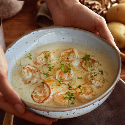 Тигровые креветки в соусе «Чкмерули»