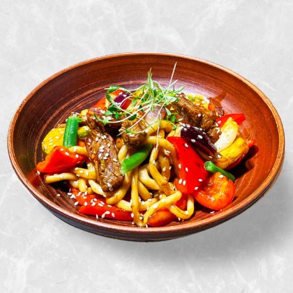 Жареный лагман со свиной вырезкой
