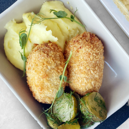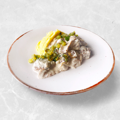 Строганов из томленого телячьего бока с картофельным пюре