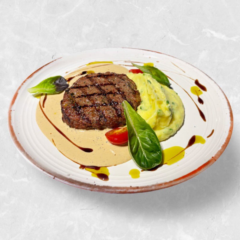Телячий бок, томленый в гранатовом соусе демиглас с картофельным пюре