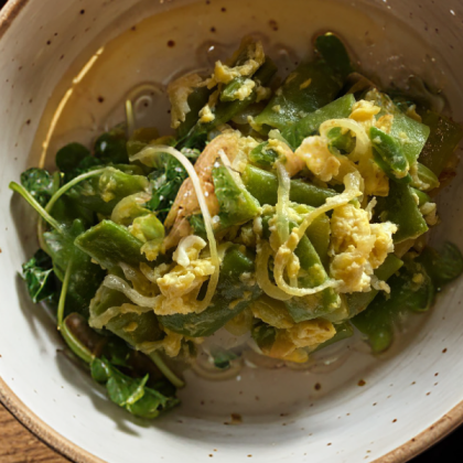 Зеленое лобио с яйцом и луком