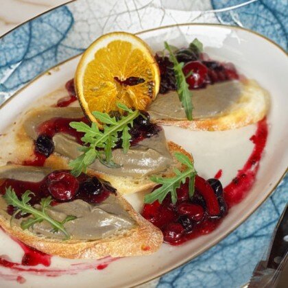Паштет из куриной печени с бруснично-апельсиновым соусом