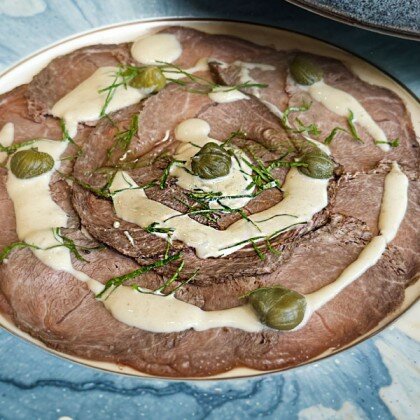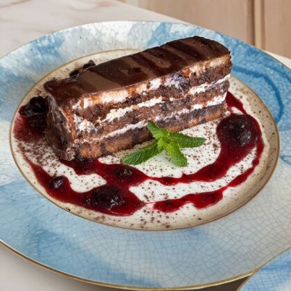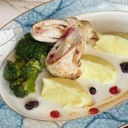 Томленая говядина в соусе Демиглас с картофельным пюре с копченым сулугуни