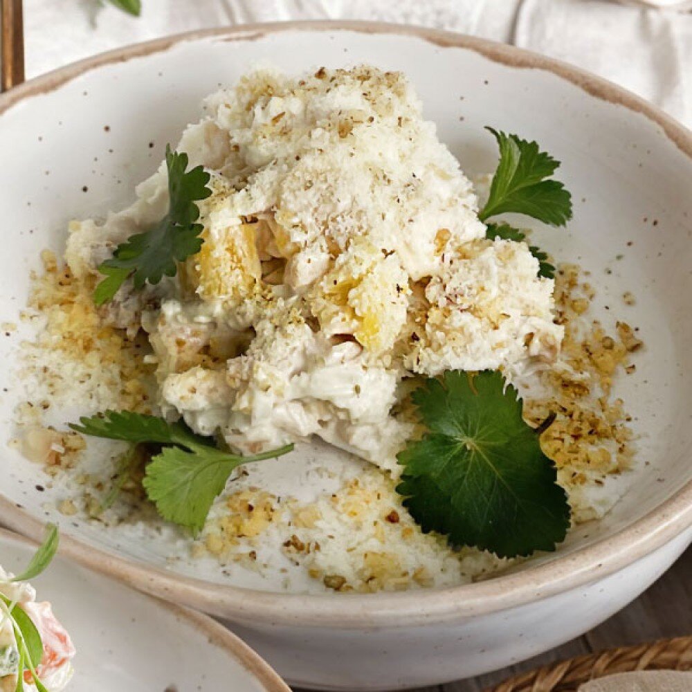 Теплый салат с креветкой и кальмаром в медово-горчичном соусе