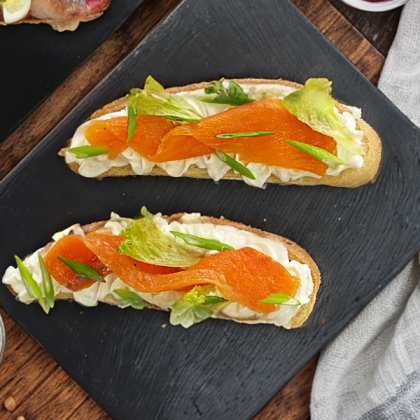 Брускетта СО СЛАБОСОЛЕНОЙ ФОРЕЛЬЮ И СЫРНЫМ МУССОМ